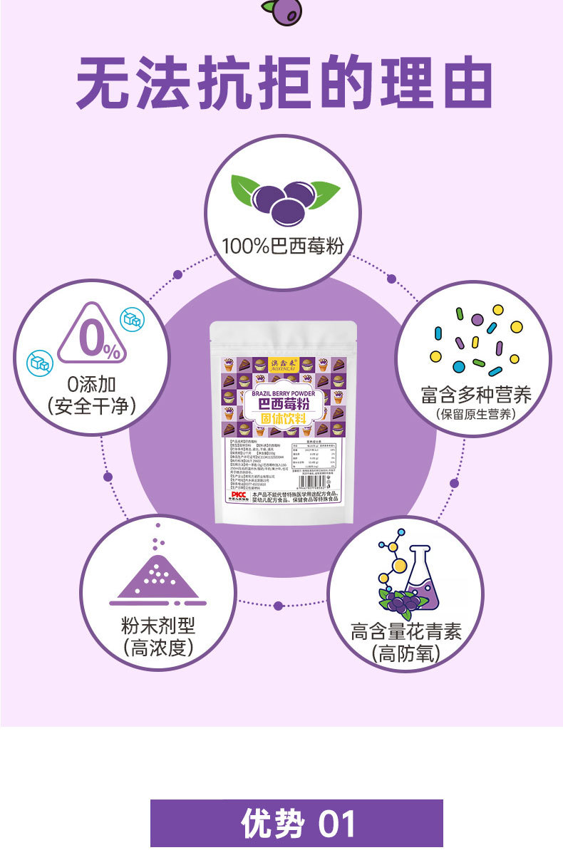 Acai Berry Powder Bagged Anthocyanin Fruit & Vegetable Dietary Fibre Powder 100g
