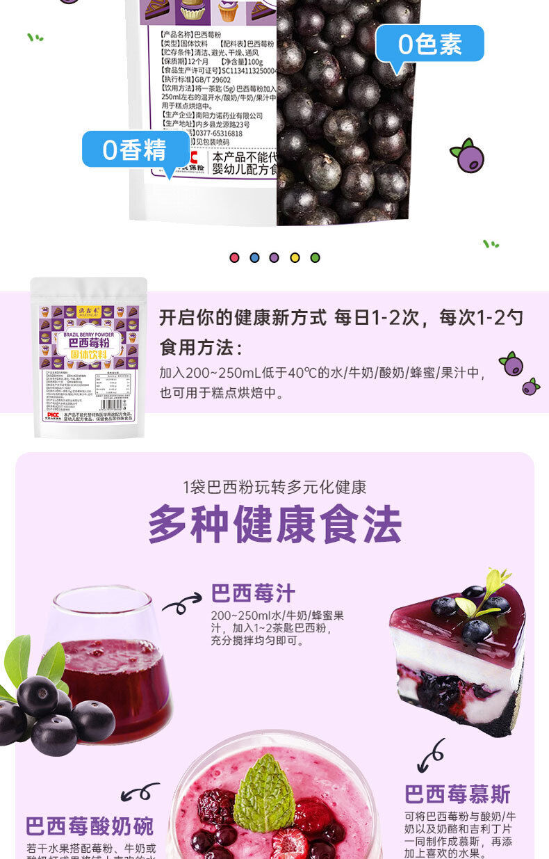 Acai Berry Powder Bagged Anthocyanin Fruit & Vegetable Dietary Fibre Powder 100g
