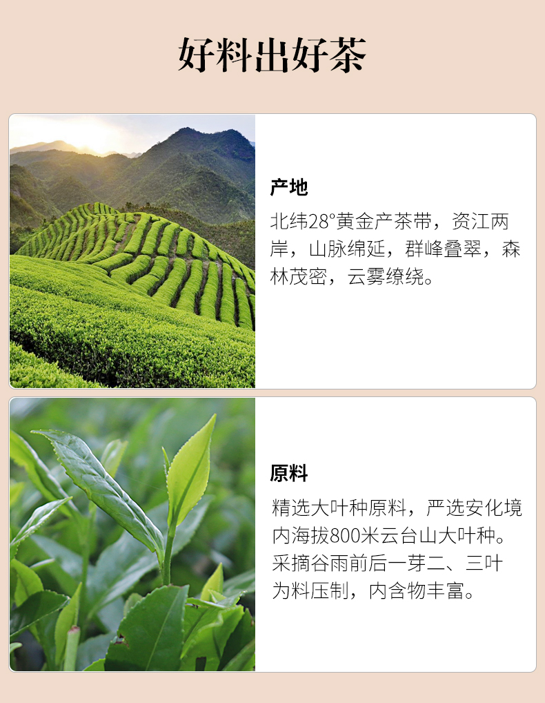 Black tea is one of the six major teas and a tea cultivated in China. Hunnan is China's largest production base of black tea while Baishaxi tea plant, Anhua is the birthplace of black tea. Anhua black gross tea adoptstraditional drying method by wood fire while in primary processing. It has the fame of 'tea as amber' and 'color as iron, with extraordinary fragrance'. It is the traditional drying by wood fire that brings forth the unique quality of Anhua black tea.