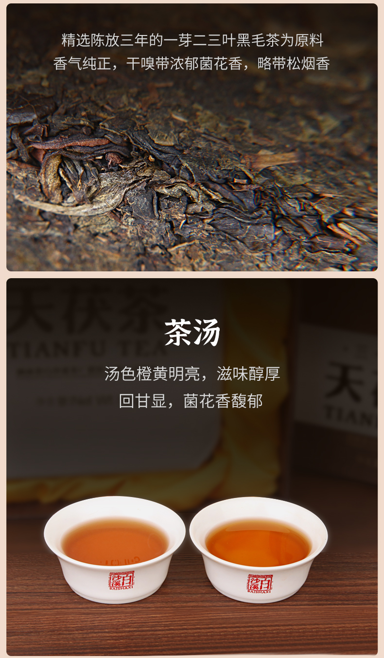 Anhua Dark Tea BaiShaxi 1939 Gold Flower Tea Brick 3 Years Aged Tian Fu Tea 1kg