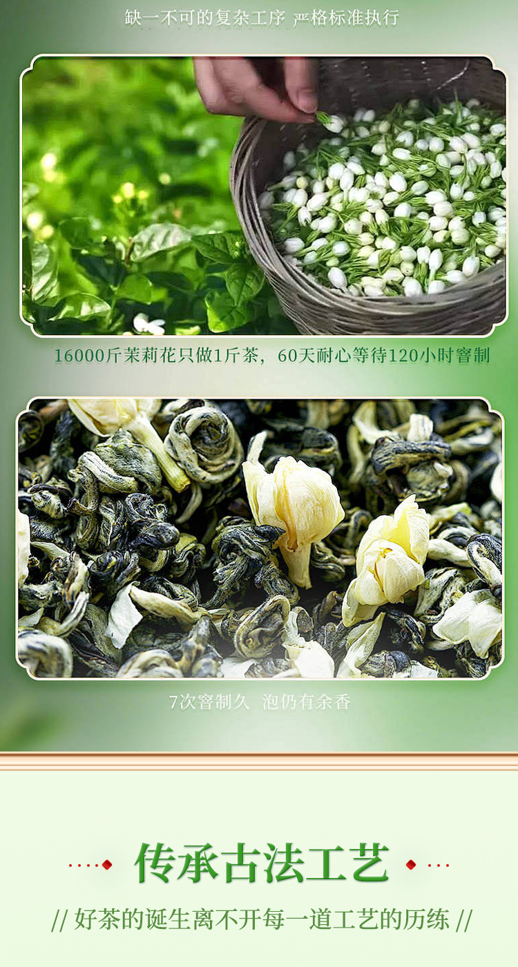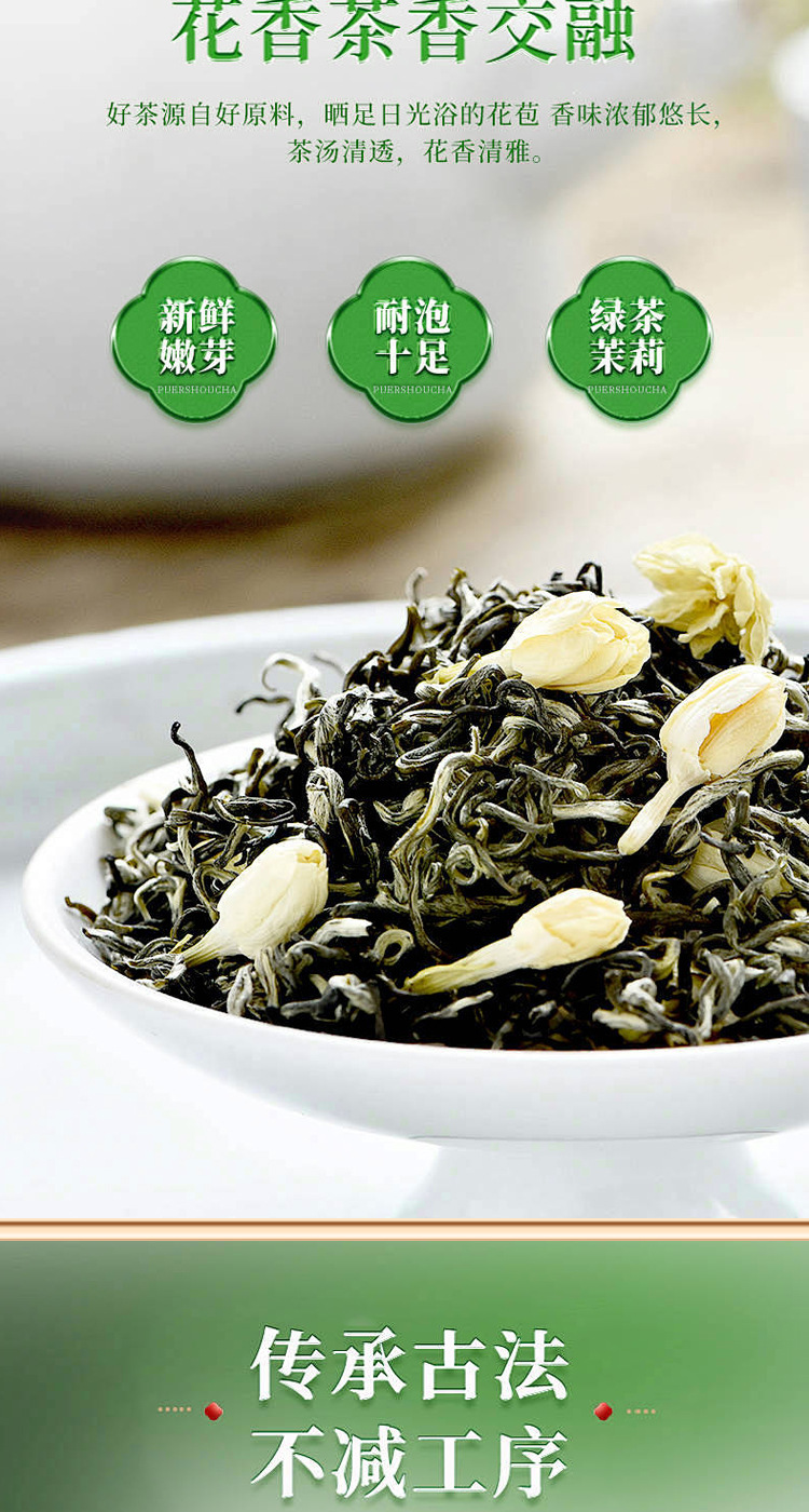 Authentic Jasmine Green Tea Handpicked Fragrant Loose Leaf Tea in Jar
