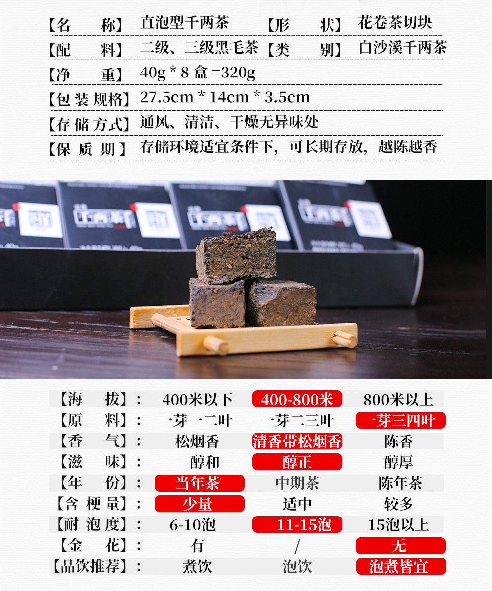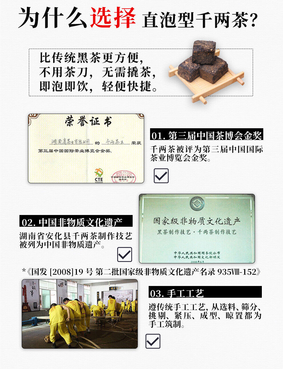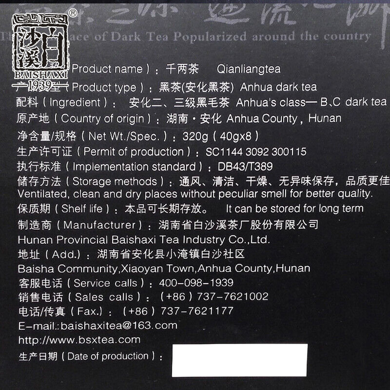 BAISHAXI Brand Anhua Qian Liang Tea Cha Hunan Anhua Dark Tea Brick 320g