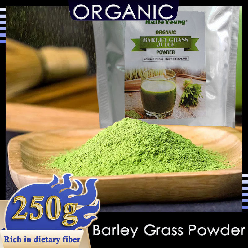 Contents : Barley Grass Powder Organic Each bag contains 250g of HelloYoung Barley Grass Powder.