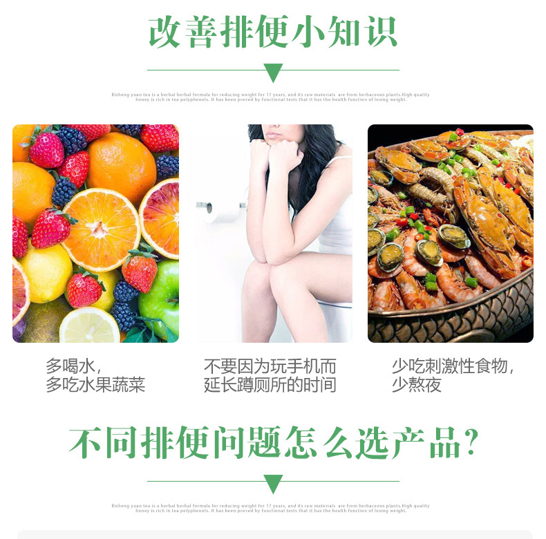 Function: Bi Sheng Yuan Enteric canal-Cleaning Tea can effective remove intestinal stool and all kinds of toxins, that apply to relieve all types of constipation and clear stain and halitosis causing by constipation. Package: 2.5g*25bags Valid: 18 months, always New Produce Date Update Usage: Pour boiling water of 100ml before meal and pour boiling water of 100 ml after meal and then drink when it is hot. Adult have one bag a day, pregnant woman and child have less dosage according to the situation. Constipation patient have dosag according to the the situation: Taking one bag a day if you stool for 2-3 days; Taking two bags a day if you stool for 4-6 days; Taking three bags a day if you stool once a week.