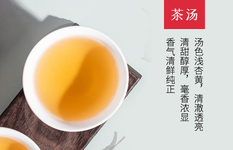 Dried tea is uniform, has full rounded shape,it is easy to be brew, bright tea soup, apricot yellow color, clean, with a unique hao xiang and honey sweet scent, delicate ,tastes sweet and lastes long.