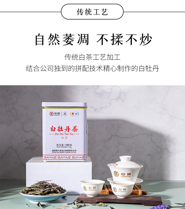 Tea Name:  CHINATEA Fujian White Tea Bai Mu Dan Pai Mu Tan Tea White Peony Tea 100g Tin