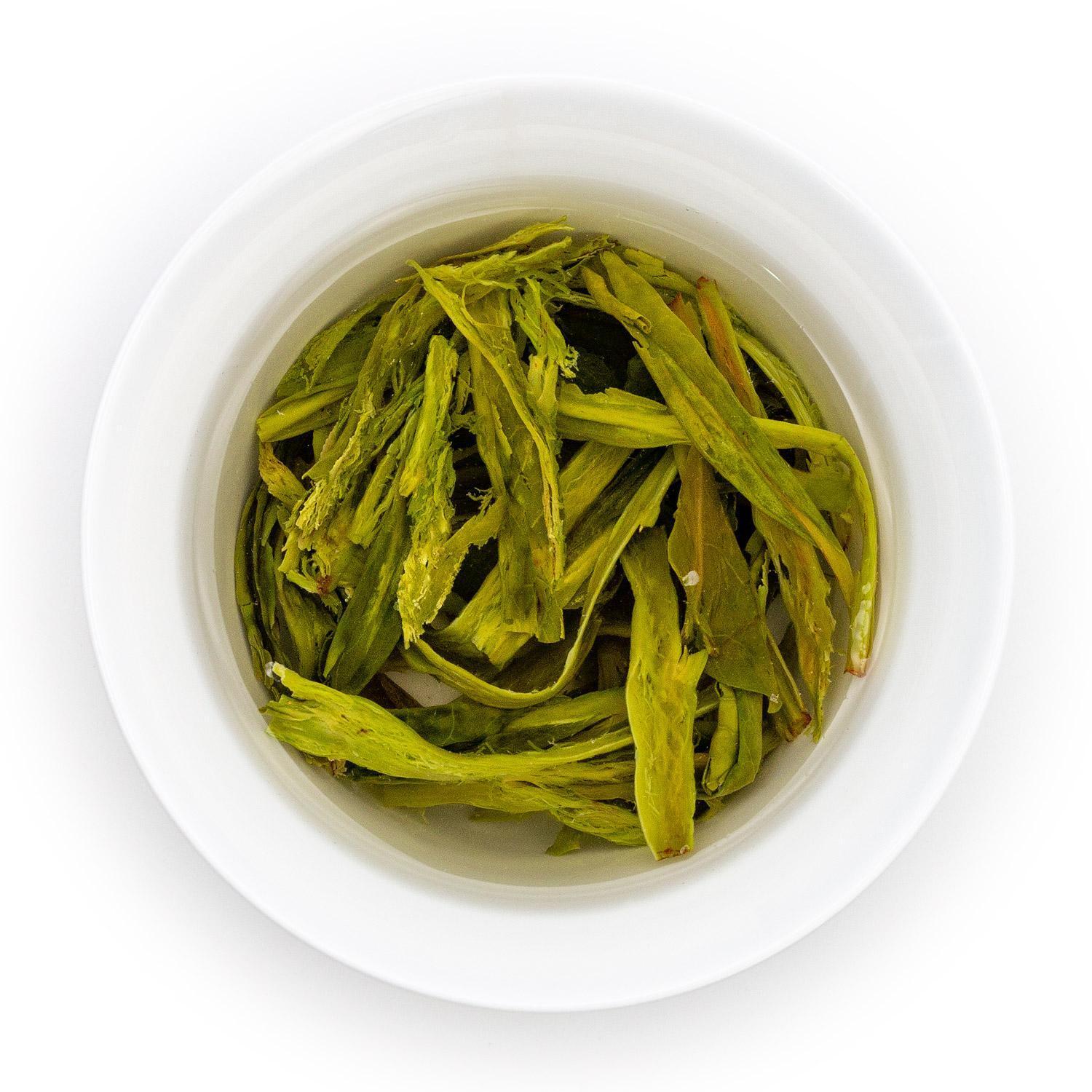 Its leaf measures up to 60 mm; it is the largest-sized leaf tea among the famous green teas. But surprisingly its size does not affect its delicate orchid fragrance with a mellow taste that lasts up to four brewing. So get a glass or a bigger teapot to make your tea. The water temperature is controlled at about 90℃ (194℉).