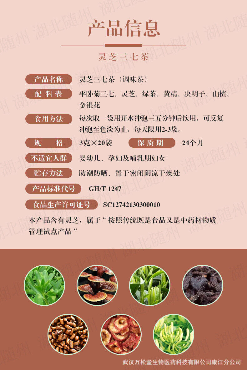 Ganoderma Lucidum Panax Ginseng Tea Chrysanthemum Sanqi Lingzhi Bag Tea 60g