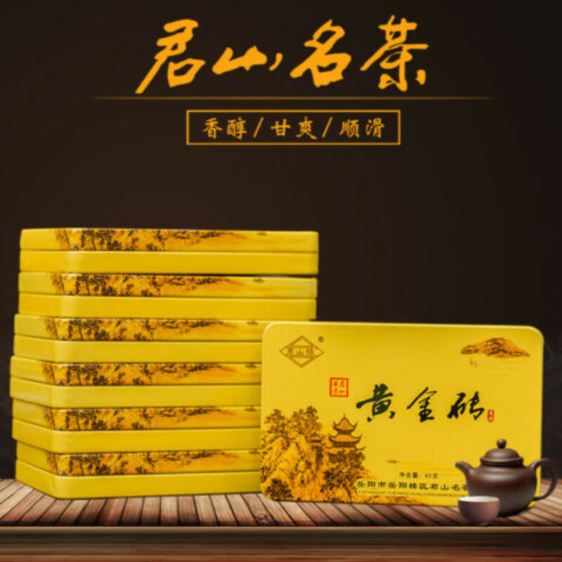 Type: Yellow Tea Net Weight: 45g Packaging: Box Origin: Hunan,China Description: Jun Shan Huang Cha tea is a yellow tea from Junshan Island of the Hunan Province in China. It is one of Chinese Famous Teas. Junshan yellow tea is only produce using the tea leaves from the tea garden at the Junshan Island, which is located in the middle of Dong Ting Lake of Hunan Province. The best quality Jun Shan tea is called as Jun Shan Yin Zhen. The production of Jun Shan Yin Zhen demands that tea pickers pluck only buds while the golden brick is made with the material picked as one bud and one leaf system. Jun Shan yellow tea is processed similarly to green tea, but after the first firing it undergoes steaming followed by a prolonged “resting” wrapped in cloth or paper. This stage called men huan may last a day or two before the final firing. The moist pause allows the leaves to breathe back their own aromas and prevents the astringency associated with some green teas. It also gives the leaves a very slight yellow cast. The initial firing halts most of the oxidation, but similar to white tea it is very slightly oxidized.As a result, it produces bright yellow color, refreshing flavor and sweet and mellow taste that are the characteristics of yellow tea. Jun Shan Huang Cha is less expensive than Jun Shan Yin Zhen needle tea, first grade leaves harvested from the same area, followed by traditional process, you can try the famouse yellow tea at an affordable price. An authentic product from Hunan Junshan Yinzhen Tea Co., Ltd. Brewing Guide: Use each cake for 200ml of water. Quickly rinse the tea leaves with hot water at 80 degree Celsius, and then gently pour hot water at 80-85 degree C into the teapot, let it brew for 2 minutes. The leaves are good for 5 infusions. Add a little more time for each subsequent infusion.