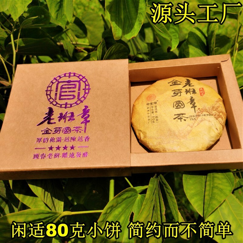 Gift Tea Golden Bud Ripe Pu'er Tea Top Laobanzhang Palace Pu'er Tea Cake 80g