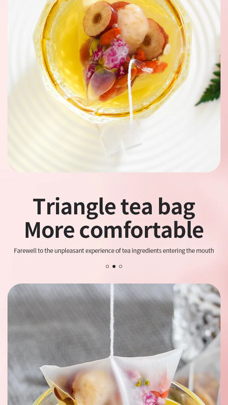 This product adopts a triangular tea bag design, which can prevent tea ingredients from entering the mouth when drinking.