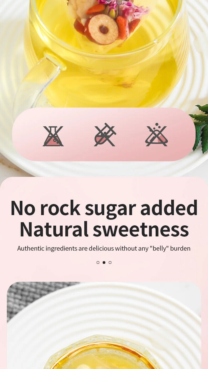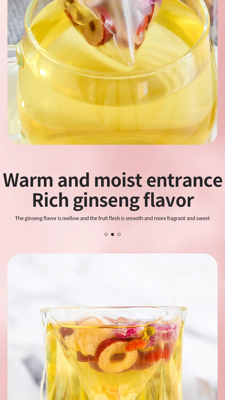 Ingredients: red dates, dried longan, goji berries, dou ble petal red roses, ginseng(Within 5 years of artificial planting) 2%