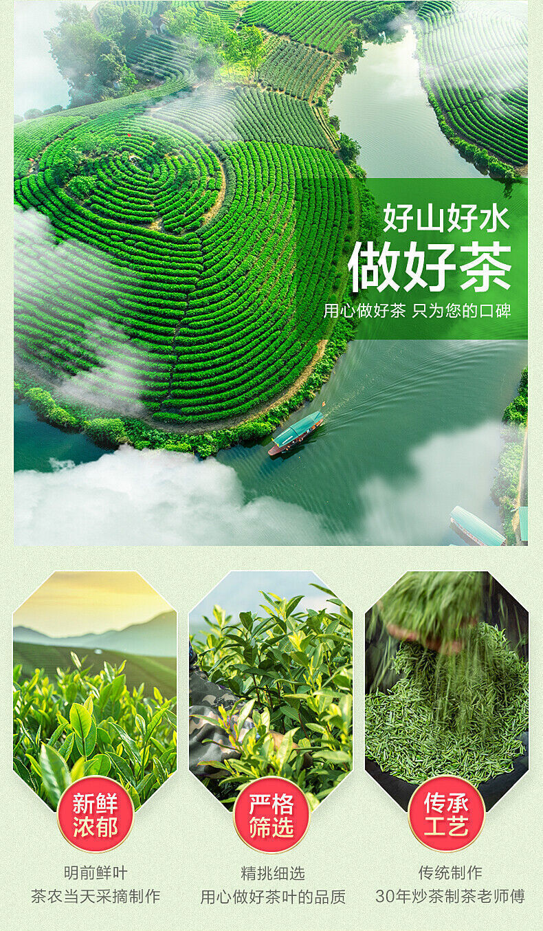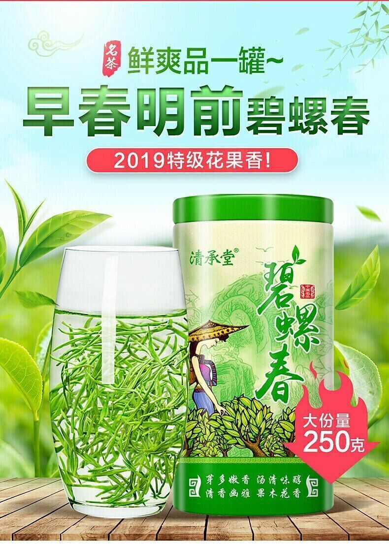 Peach, apricot and plum trees are planted among the bushes where tea trees grow nearby. When these fruit trees bloom, the tender spouts and buds of tea absorb the aromas to be passed on to those who drink their infusion. The name is now known all over the world, for this is one of China's famous rare teas. Its home is two mountains known as Dong Shan & Xi Shan (East and West) Dongting which poke up out of Taihu, the great lake not far west of Shanghai, and where the garden city of Suzhou is located. One mountain is an island in the lake and the other a peninsula. The water evaporating from the lake keeps them overhung with clouds and mist, thus the young leaves stay moist. The prime time to pick the tea leaves is during the QingMing festival when the buds are jade-green tinged with white. Bi Luo Chun is picked during the spring until April when the spring rains begin. Only one leaf and the bud are plucked. Harvesting is done completely by hand and great skill is required to roll and fire the leaves. Bi Luo Chun was selected as the offering of local government to the emperor in Qing Dynasty.