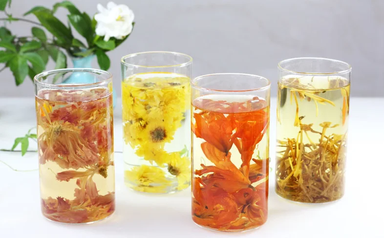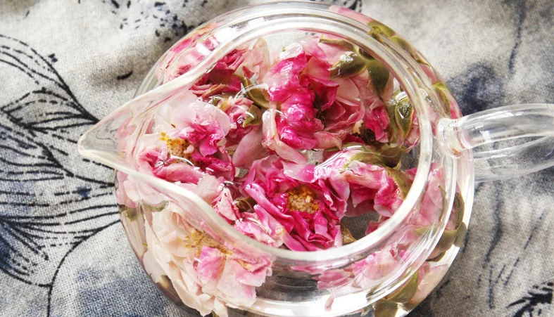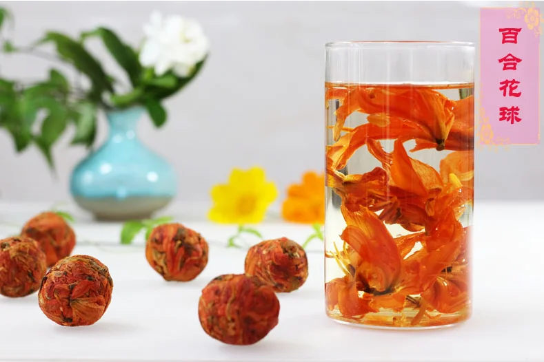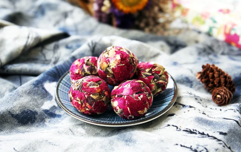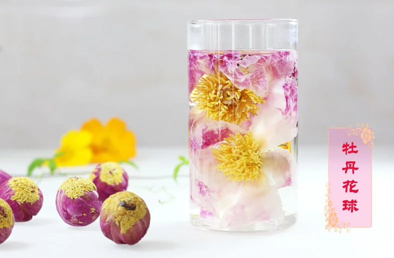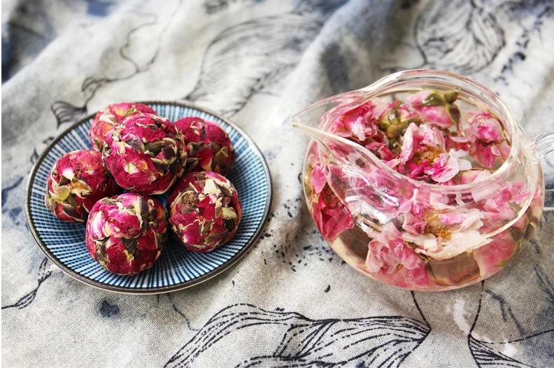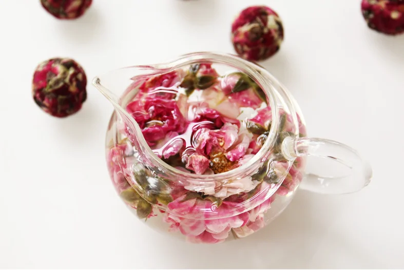 Blooming Tea is crafted with tea all buds and edible dried flowers. It places edible dried flowers into tea buds to be a small tea ball, melting with tea's fragrance and flowers' beauty. Pouring hot water into the glass for one or two minutes, the round tea ball blossom out beautifully, to be a beautiful flower embrace with flower tea buds. It is natural, healthy and fashionable.