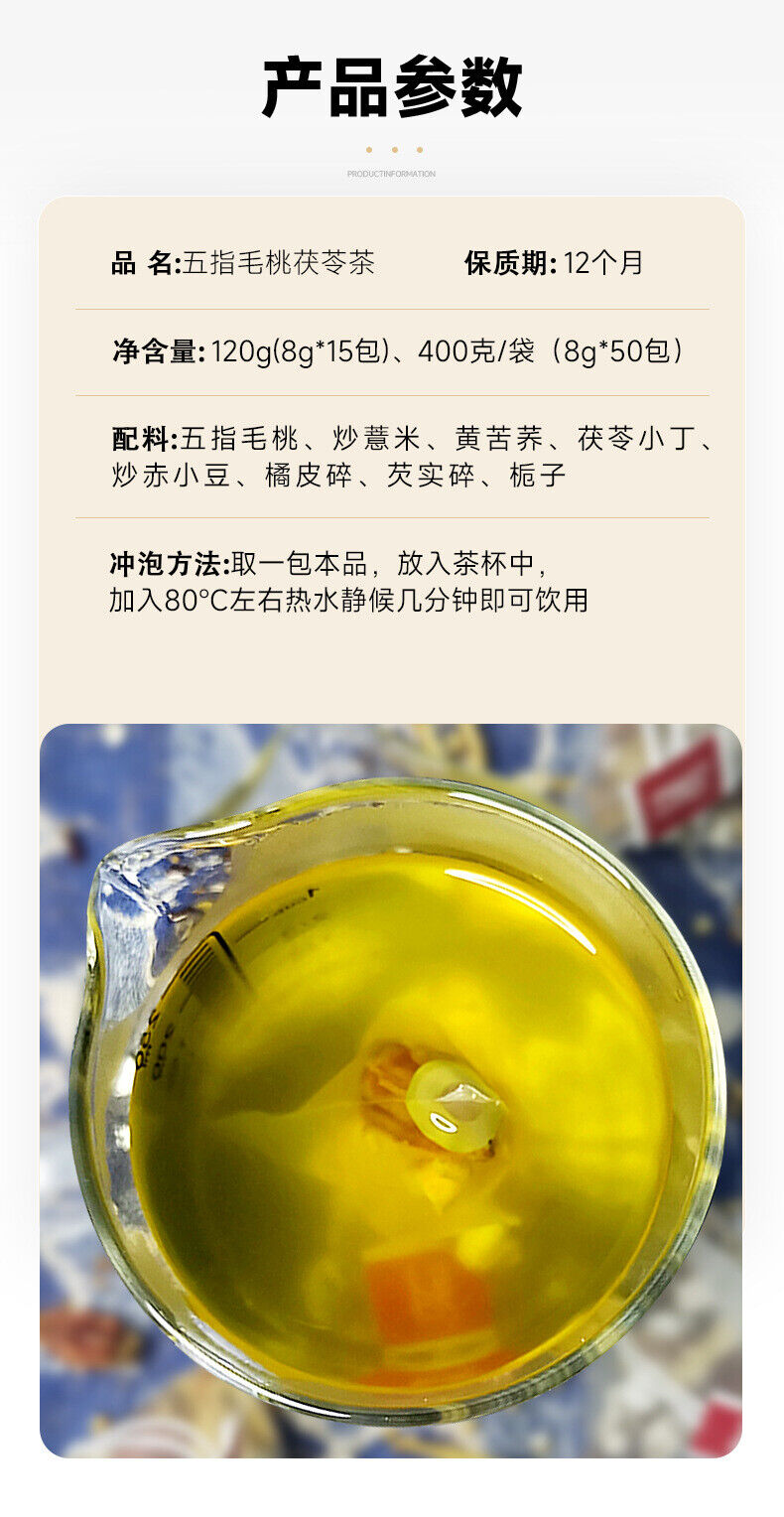 Health Tea Five Fingers Peach and Poria Tea Wu Zhi Mao Tao 250g Triangle Bag