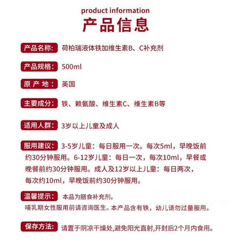 Heber Rui Liquid Iron Supplement Oral Liquid VC VitaminB Folic Acid 500ml/bottle