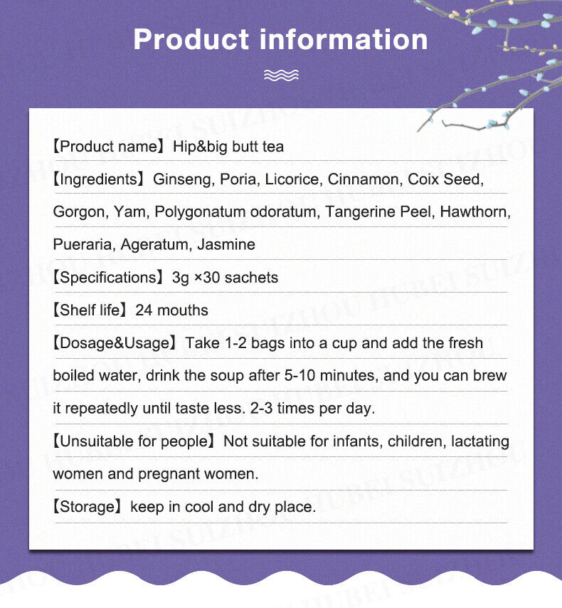 Hip&big butt tea is made, that boost the estrogen and helps fat accumulate in the butt and hip area, giving user a bigger, rounder and curvier look.