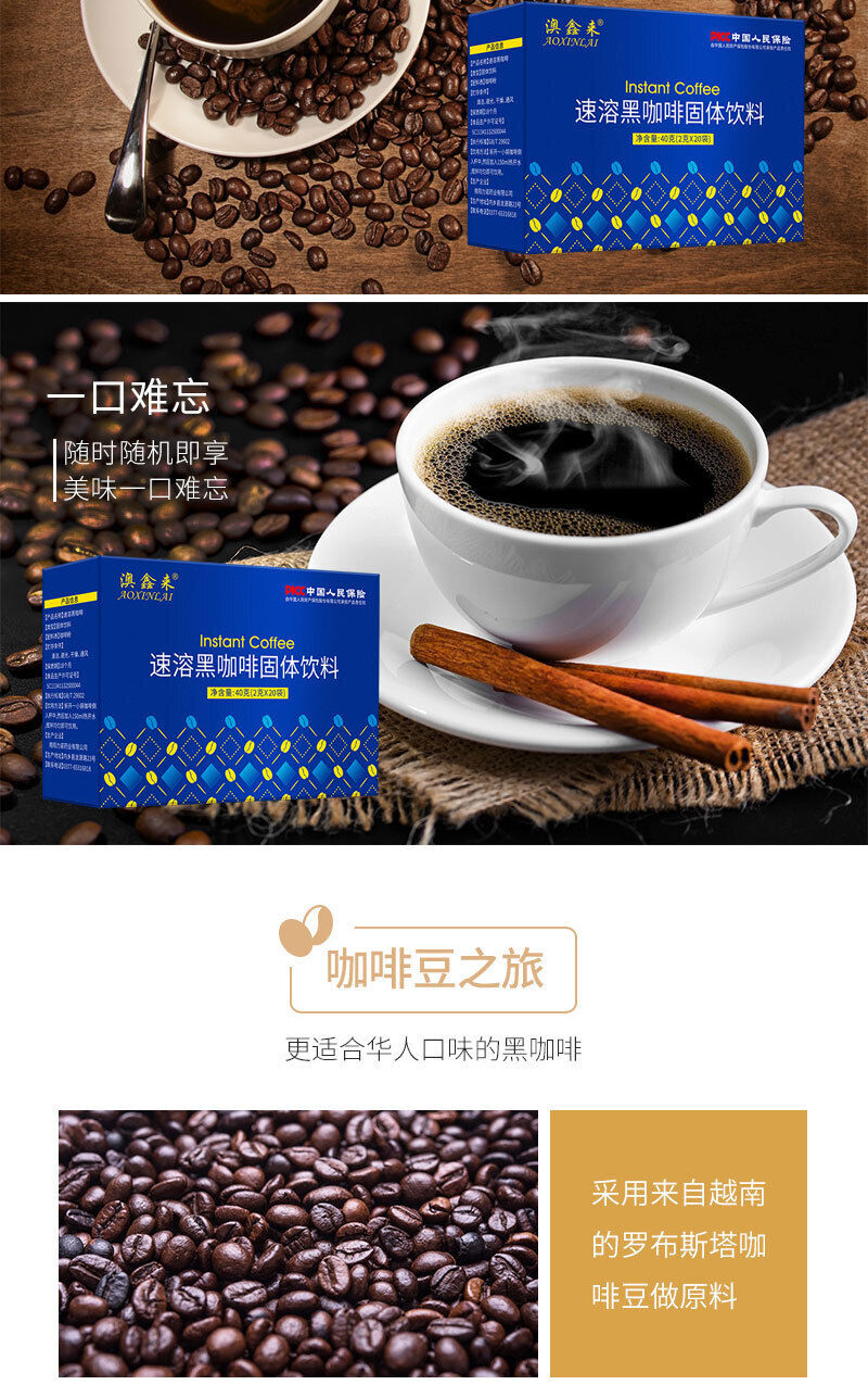 Instant Black Coffee Blue Mountain Black Coffee 0 Fat Zero Cane Sugar 20 cups40g