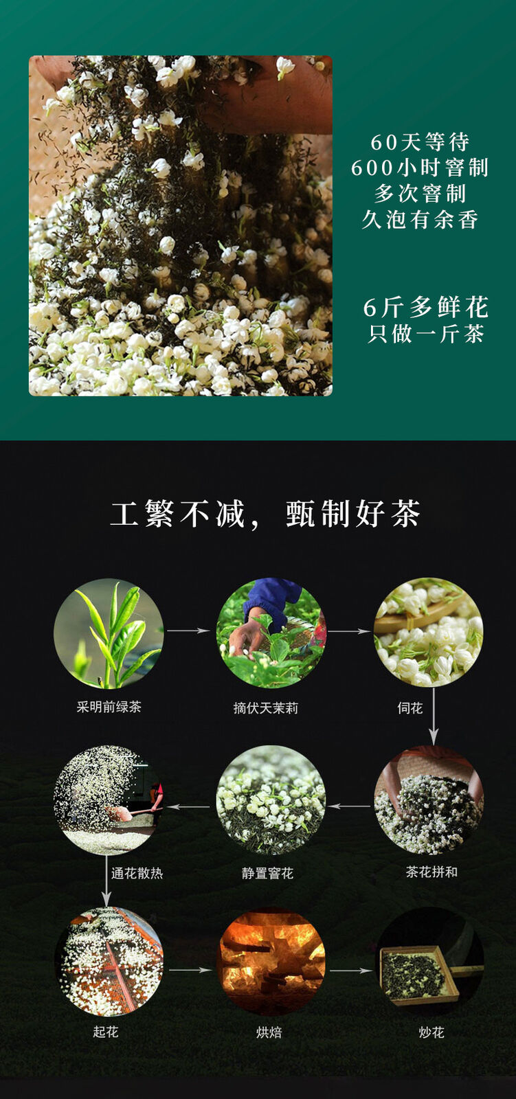 Jasmine Tea Green Tea Leaves Bulk New Tea 飘雪小针王儿女环白毫 500g
