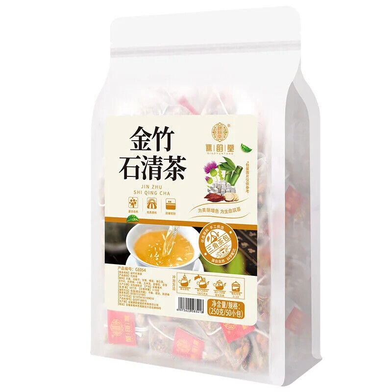 Product name: Jinzhushi Qingcha Specification: 250g/bag (50 small bags) Ingredients: barley cassia seed liquorice orange peel Ta raxacum light bamboo leaf fresh white grassRoot thistle Corn silk honeysuckle tuckahoe Shelf life: 18 months Storage: Store in a cool and dry place This product adopts a triangular tea bag design, which...