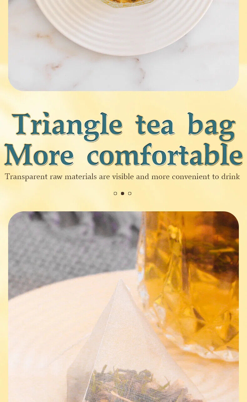 This product adopts a triangular tea bag design, which can prevent tea ingredients from entering the mouth when drinking.