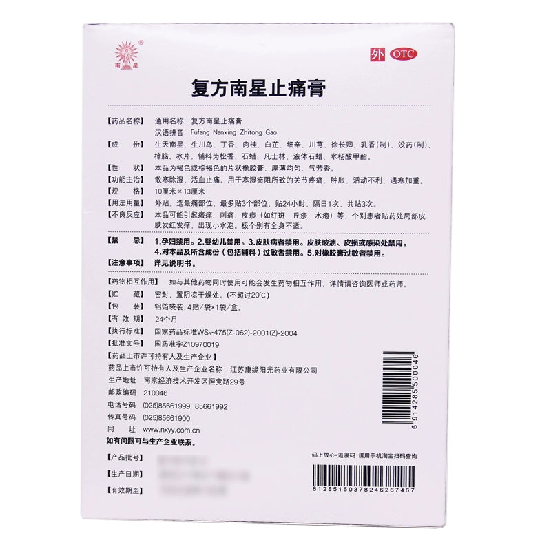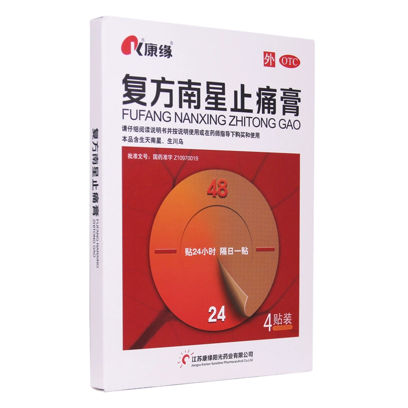 Kang Yuan Compound Southern Star Pain Relieving Cream 4 Paste/box Blood circulation and pain relief Joint pain Swelling OTC 康缘 复方南星止痛膏 4贴/盒活血止痛 关节疼痛 肿胀 OTC