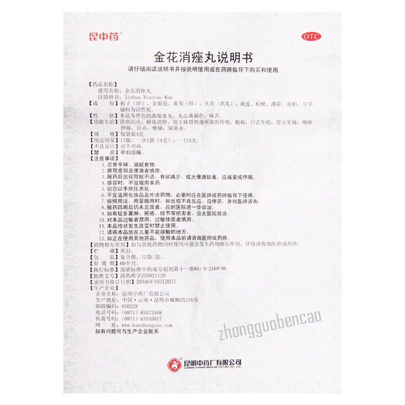 昆中药金花消痤丸 每盒12袋 1盒装 保质期60个月 Item: Kunzhongyao Jinhua Xiaocuo Wan Quantity/Box: 12 Bags Shelf Life: 60 Months Package Included: 1 Box of Kunzhongyao Jinhua Xiaocuo Wan |