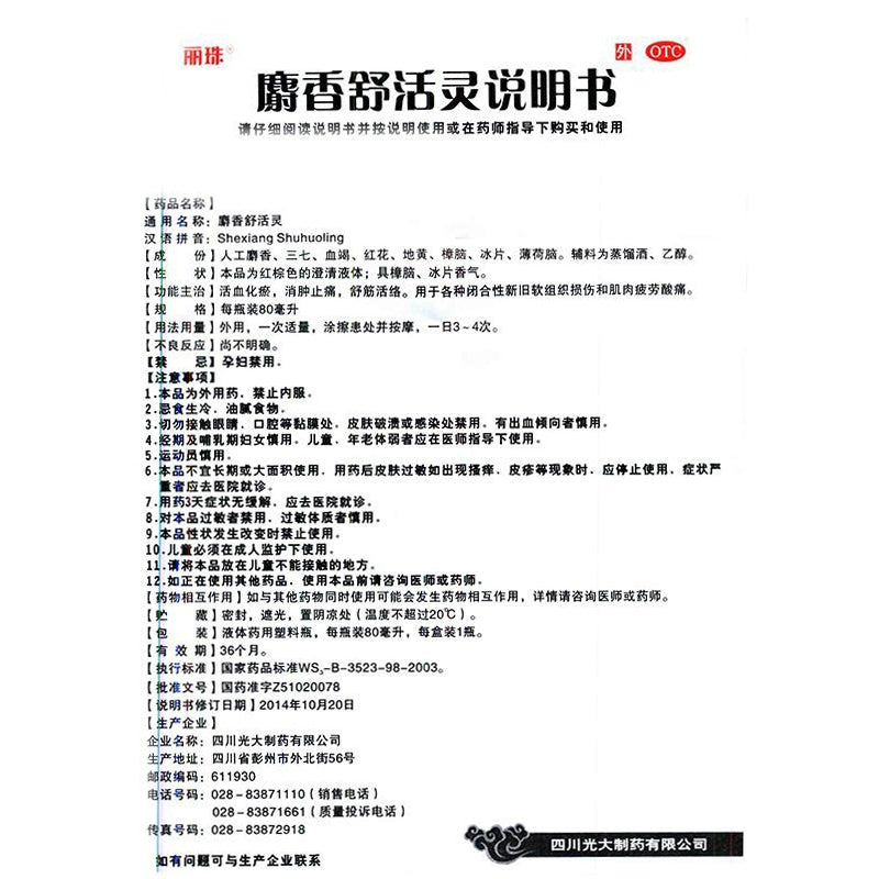 Li Zhu Musk Relief 80ml*1 bottle/box OTC 丽珠 麝香舒活灵 80ml*1瓶/盒 OTC
