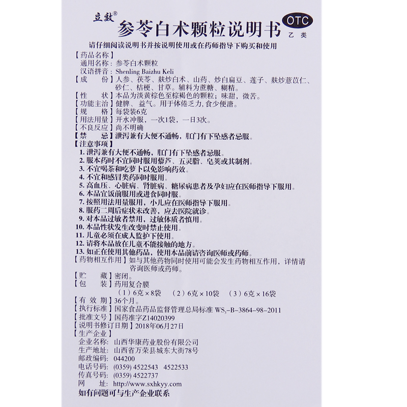 Lixing Ginseng & Atractylodis Macrocephalae Granules 6g*8bag/box OTC 立效 参苓白术颗粒 6g*8袋/盒 OTC