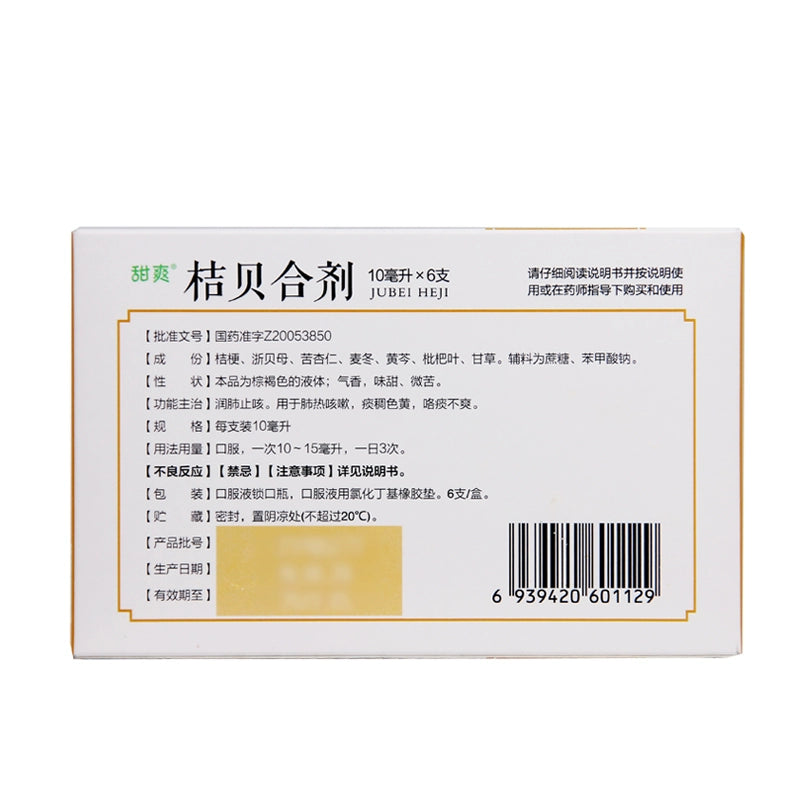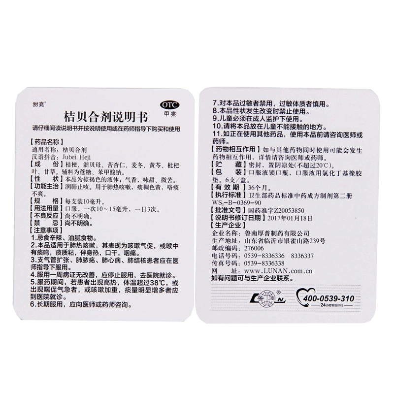 Lunan Tangerine Shellfish Combination 10ml*6pcs/box OTC 鲁南 桔贝合剂 10ml*6支/盒 OTC
