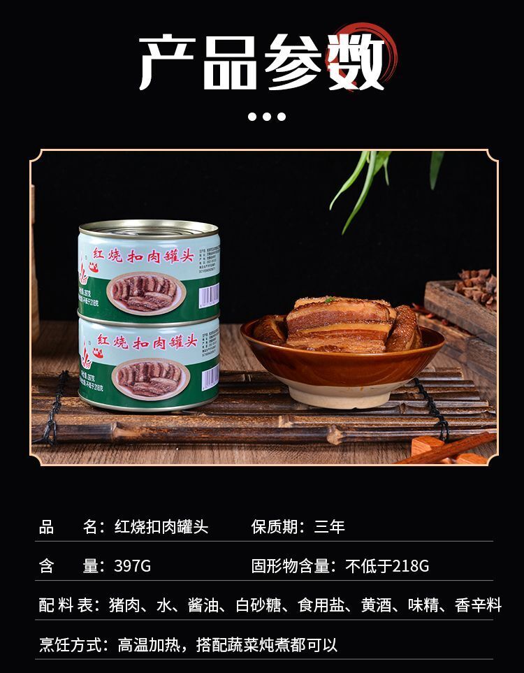 Mei Cai Kou Rou Canned Ready-to-Eat 397g x 4 Braised Pork Belly Dongpo Pork