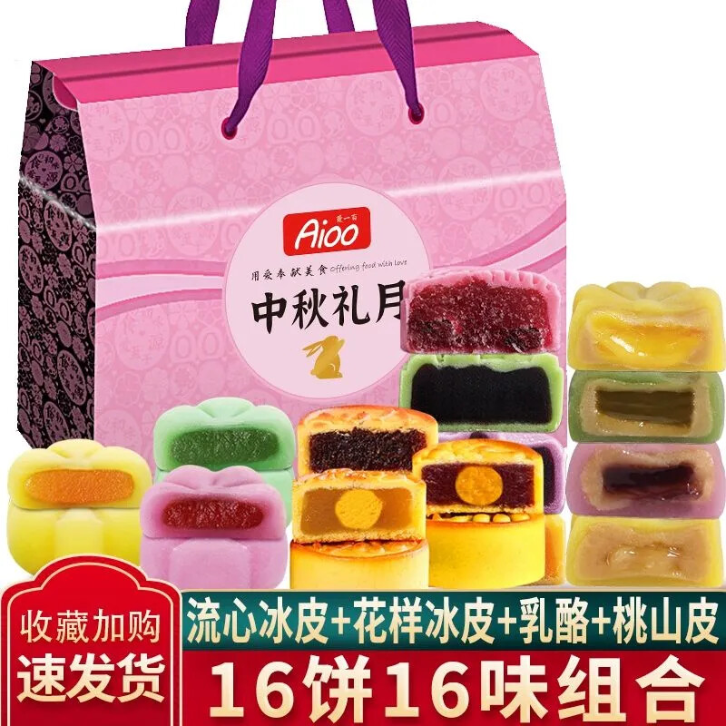 Mid-Autumn Festival moon cake gift box Hong Kong-style milk yellow flowing heart