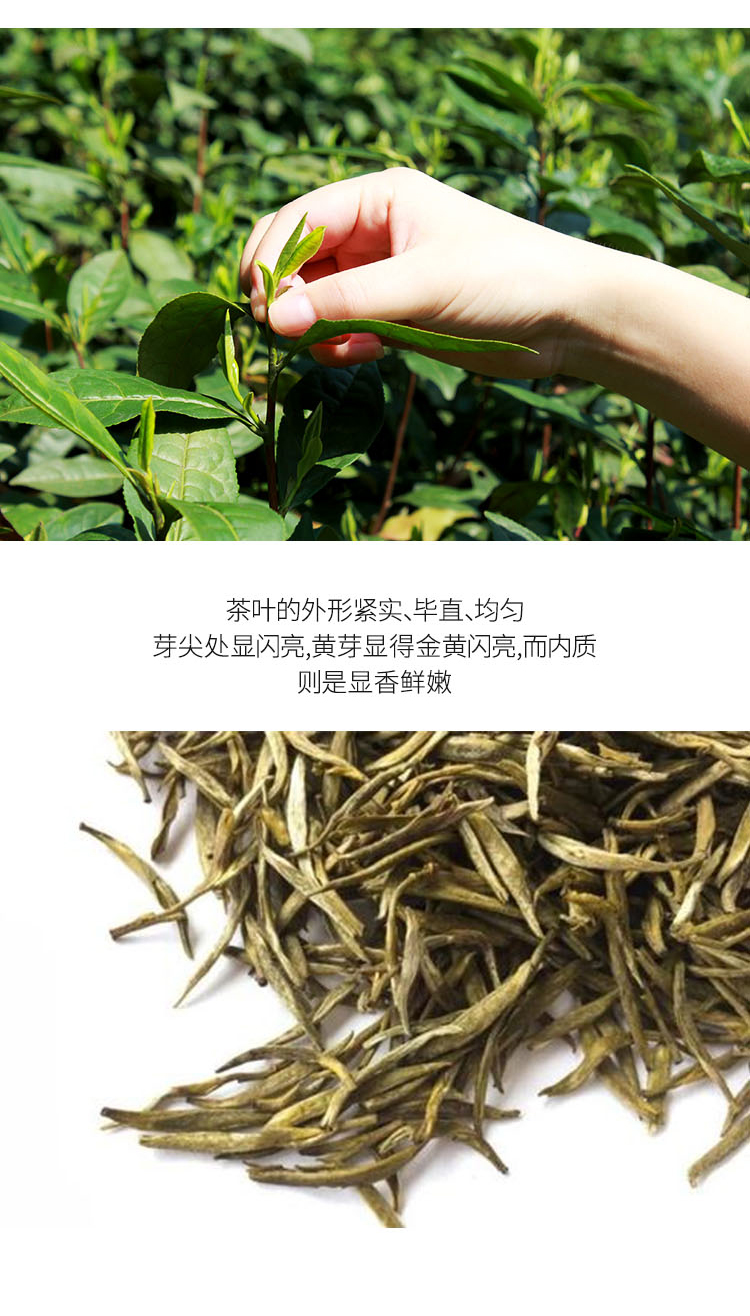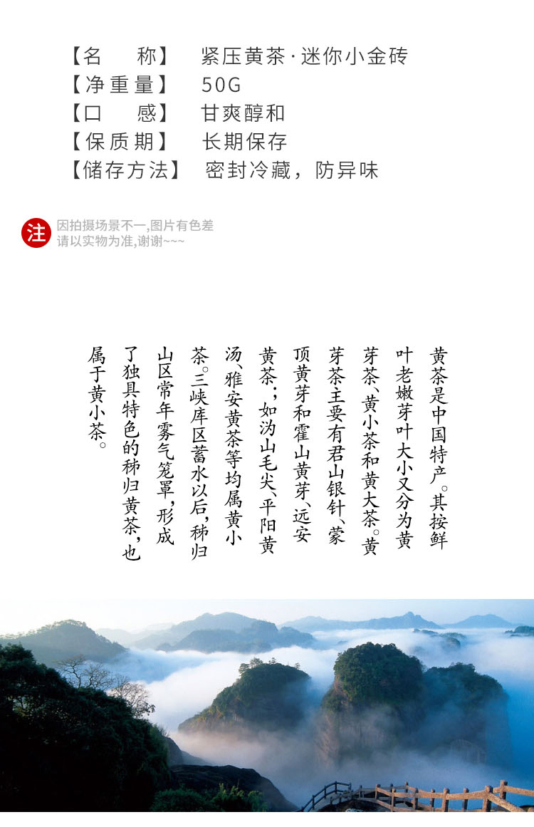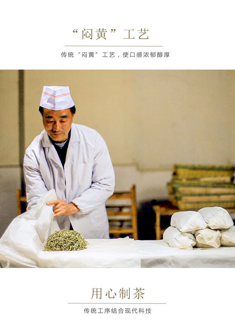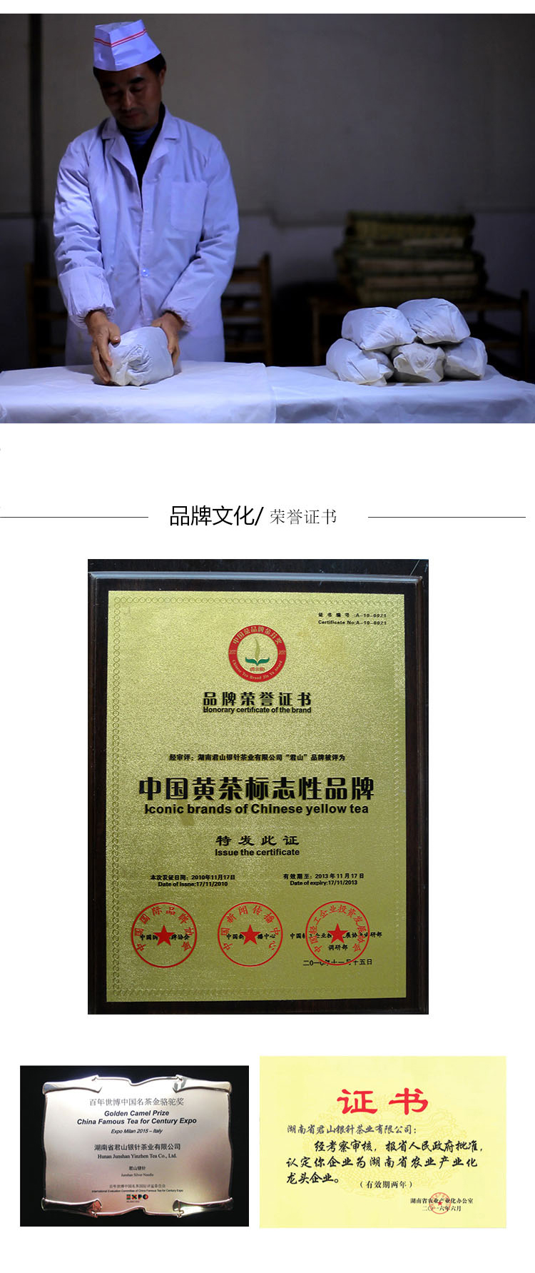 Type: Yellow Tea Net Weight: 50g (5g x 10 pcs) Packaging: Box Origin: Yueyang,Hunan,China Description: Jun Shan Huang Cha tea is a yellow tea from Junshan Island of the Hunan Province in China. It is one of Chinese Famous Teas. Junshan yellow tea is only produce using the tea leaves from the tea garden at the Junshan Island, which is located in the middle of Dong Ting Lake of Hunan Province. The best quality Jun Shan tea is called as Jun Shan Yin Zhen. The production of Jun Shan Yin Zhen demands that tea pickers pluck only buds while the golden brick is made with the material picked as one bud and one leaf system. Jun Shan yellow tea is processed similarly to green tea, but after the first firing it undergoes steaming followed by a prolonged “resting” wrapped in cloth or paper. This stage called men huan may last a day or two before the final firing. The moist pause allows the leaves to breathe back their own aromas and prevents the astringency associated with some green teas. It also gives the leaves a very slight yellow cast. The initial firing halts most of the oxidation, but similar to white tea it is very slightly oxidized.As a result, it produces bright yellow color, refreshing flavor and sweet and mellow taste that are the characteristics of yellow tea. Jun Shan Huang Cha is less expensive than Jun Shan Yin Zhen needle tea, first grade leaves harvested from the same area, followed by traditional process, you can try the famouse yellow tea at an affordable price. An authentic product from Hunan Junshan Yinzhen Tea Co., Ltd. Brewing Guide: Use each cake for 200ml of water. Quickly rinse the tea leaves with hot water at 80 degree Celsius, and then gently pour hot water at 80-85 degree C into the teapot, let it brew for 2 minutes. The leaves are good for 5 infusions. Add a little more time for each subsequent infusion.