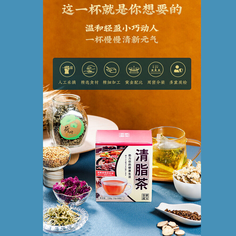 Natural Healthy Tea Fat FlowTea日式脂流茶 5g*30小袋荷叶茶排油枸杞菊花决明子大麦桑叶甘草茶包 清脂j减油茶解腻 喝出轻盈体态