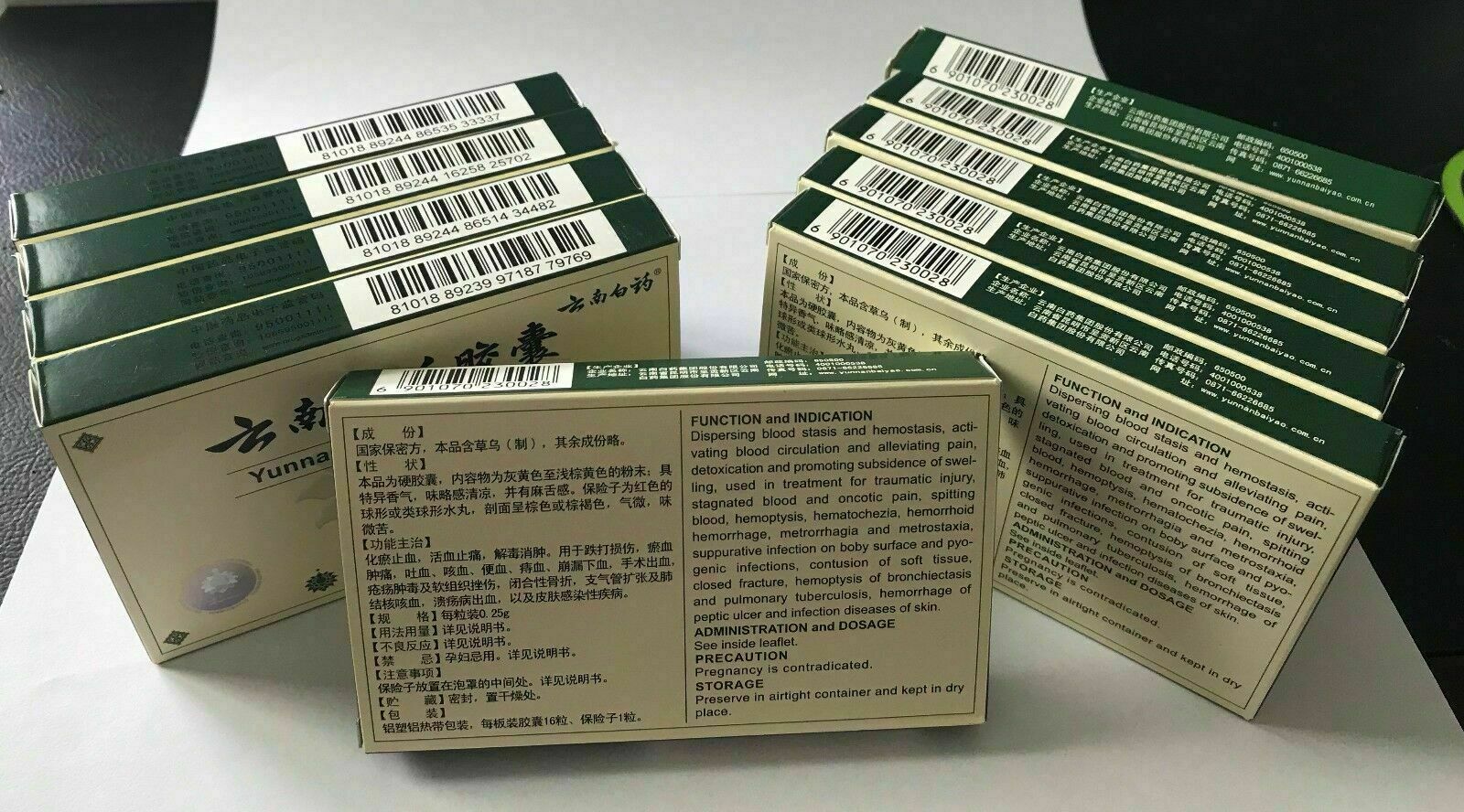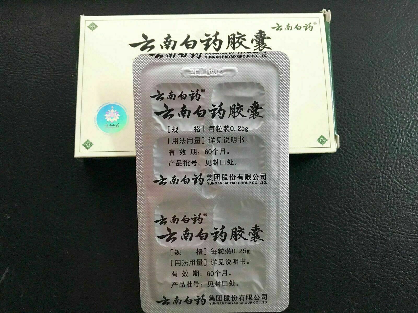 NEW SEALED 10 boxes genuine Yunnan Baiyao Capsules with English instruction 10 x 16 Capsules ,160 Capsules in total China Pharmaceutical electronic monitoring code 16 Capsules/box, 0.25g/cap,1 Safety Pill/box Yunnan Baiyao: 1.It has been used extensively and effectively for the treatment of open cuts and wounds, muscular trauma and...
