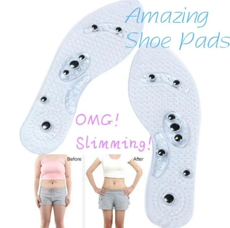 New Men and Women Magnetic Therapy Foot Insole Transparent Silicone Anti-fatigue Health Care Massage Slimming Weight Loss Insole   Feature: 1.Thenar massage can strengthen health and resist ill 2.Gel material, shock absorption and comfortable, clean and ventilate 3.Separate sweat and deodorizing, washing and using freely 4.You can...