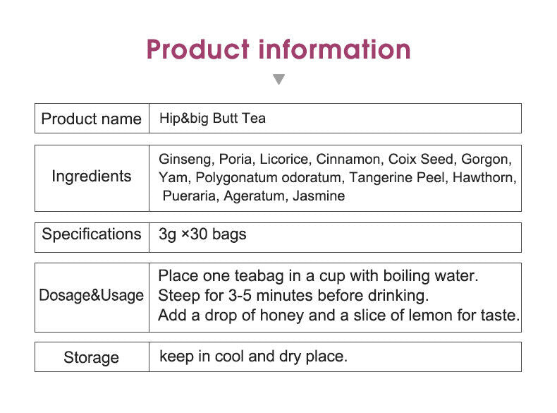 The best to you Natural,、Healthy、Efficient hip up tea 2.5specification 3g*30bag/box Min order quantit(MOQ) 100box OEM accept,the MOQ 1000box Storage Keep in a dry and cool place Port SHANGHAI, GUANGZHOU ,SHENZHEN Delivery time Express: 7-10 days. Shipping by sea: 30-45 days Contact  COCO :+8613677218312 (WhatsApp/wechat)