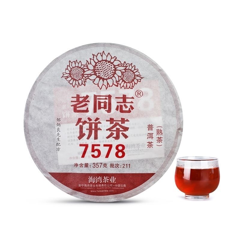 Old Comrade 7578 Ripe Tea Pu'er Tea Classic Cake Tea Yunnan Qizi Cake Tea 357G
