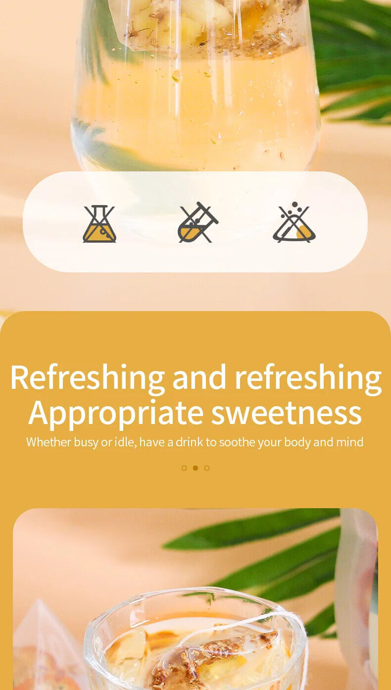 Product name: Pineapple Osmanthus snow pear Tea Specification: 375g/bag (25 small bags) Ingredients: rock sugar, dried snow pear, dried pineapple, dried kumquat, osmanthus Shelf life: 18 months Storage: placed in a cool and dry place, sealed, and odor resistant This product adopts a triangular tea bag design, which can prevent...