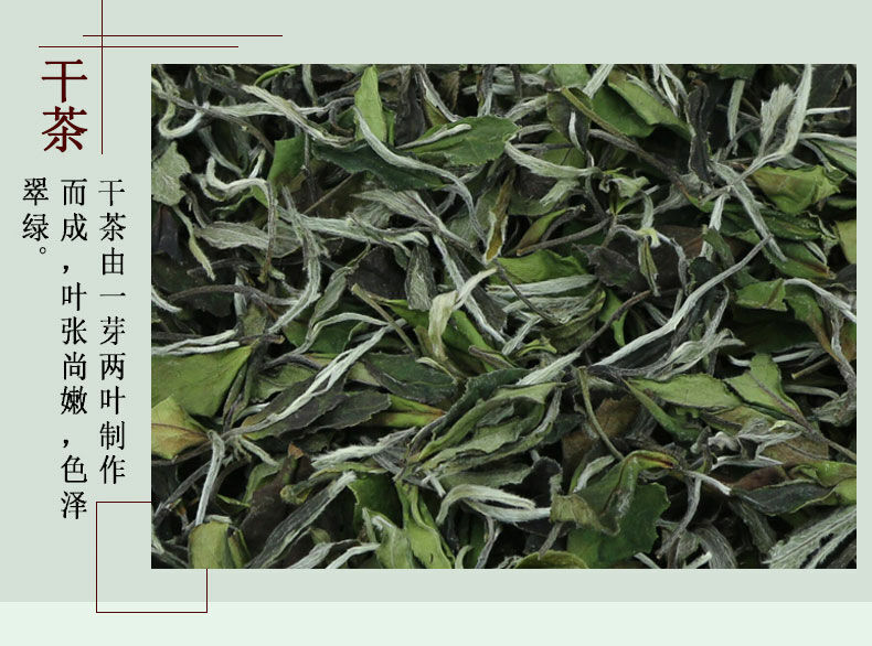 Type: White Tea Net Weight: 400g Origin: Fujian,China White Peony, incorporates one bud and two tiny leaves, plucked in early spring, covered with tiny silver/white fuzz on one side and touting a deep sage green color on the other side. In rare cases, the leaves may be mixed with the Shui...