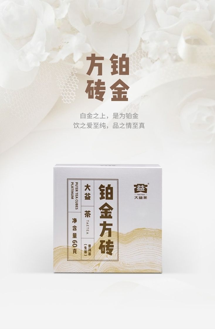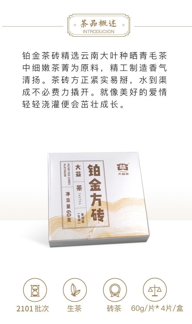 Pu'er Tea Platinum Square Brick Raw Tea Small Square Brick Menghai Tea 60g/piece