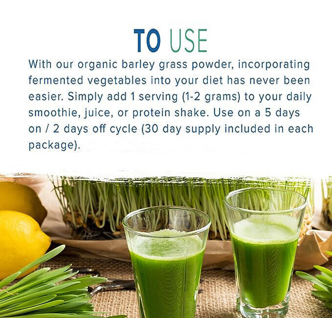 Packed in a food grade PE/Aluminum stand up zip pouch to better preserve the quality of the Barley Grass powder.