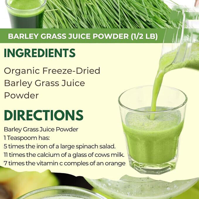 The benefits of barley grass powder are often attributed to its high nutritive content. According to the US Food and Drug Administration, 3 teaspoons or 5 grams of the powder contains the following nutrients: