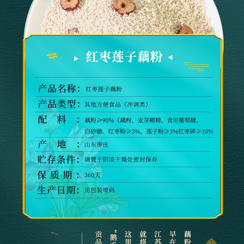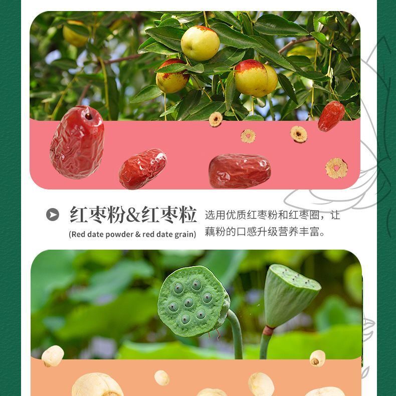 Ingredients: lotus root starch ≥90%, crushed red dates ≥10%.