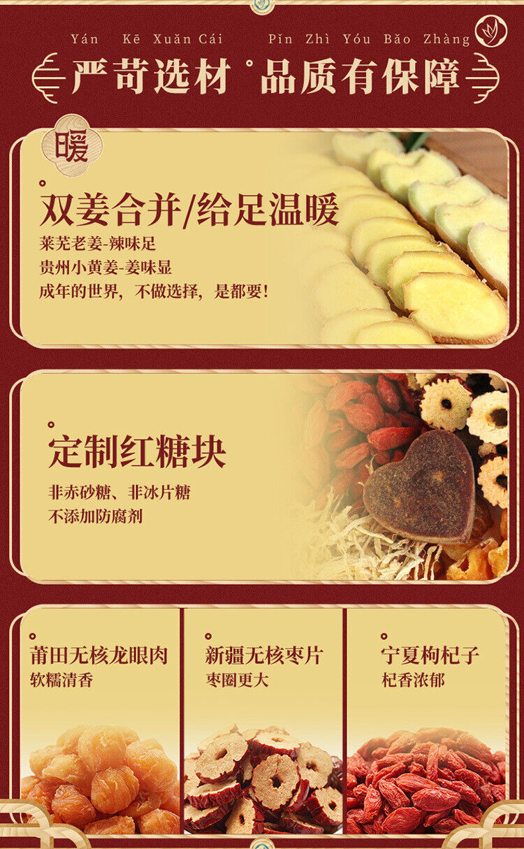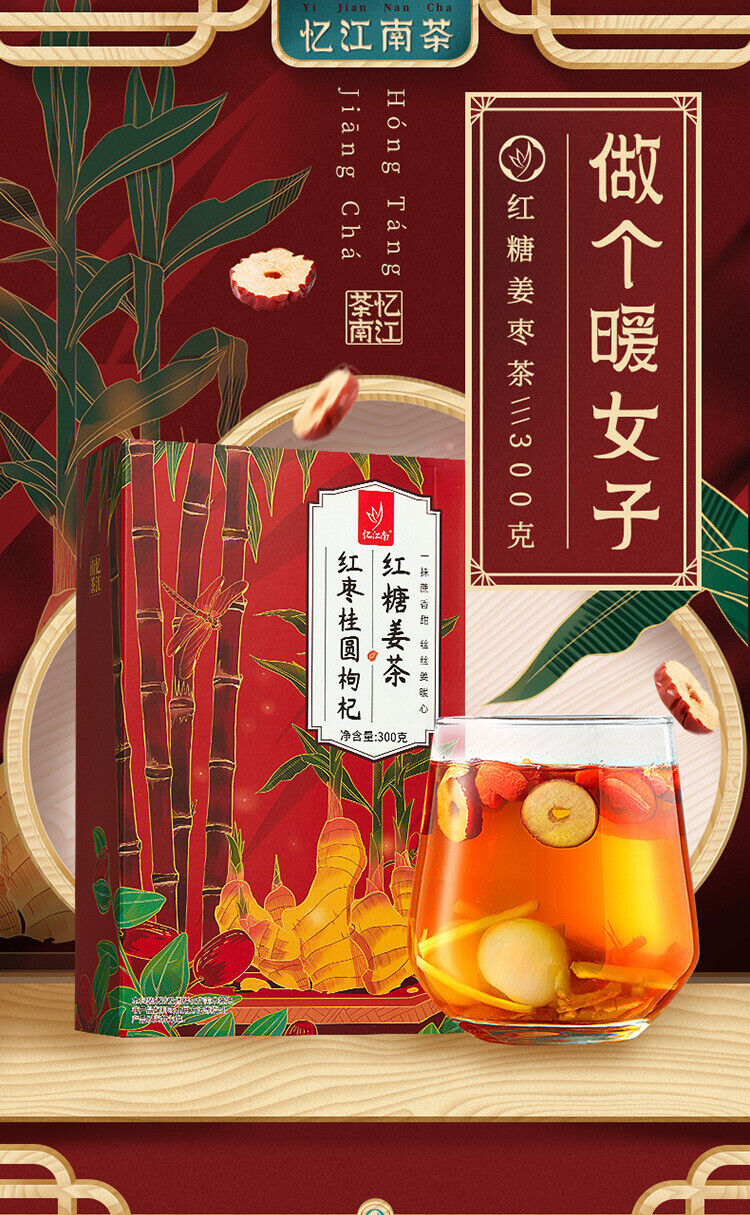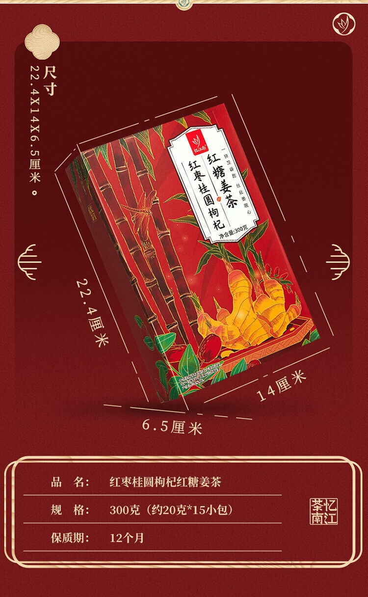 Red Dates, Longans, Goji Berries, Black Sugar, Ginger Tea 300g Health Tea