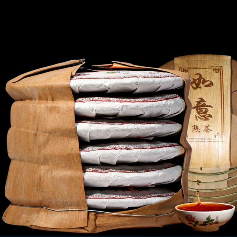 Ripe Pu Erh Black Tea Chinese Yunnan Pure Ruyi Qizi Pu'er Tea Cake 7 Cakes 2499g
