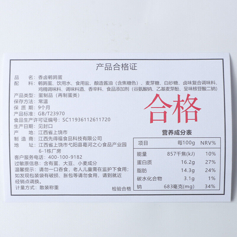 Salted Quail Eggs Iron Eggs Ready-to-Eat Braised Flavor Instant Snack