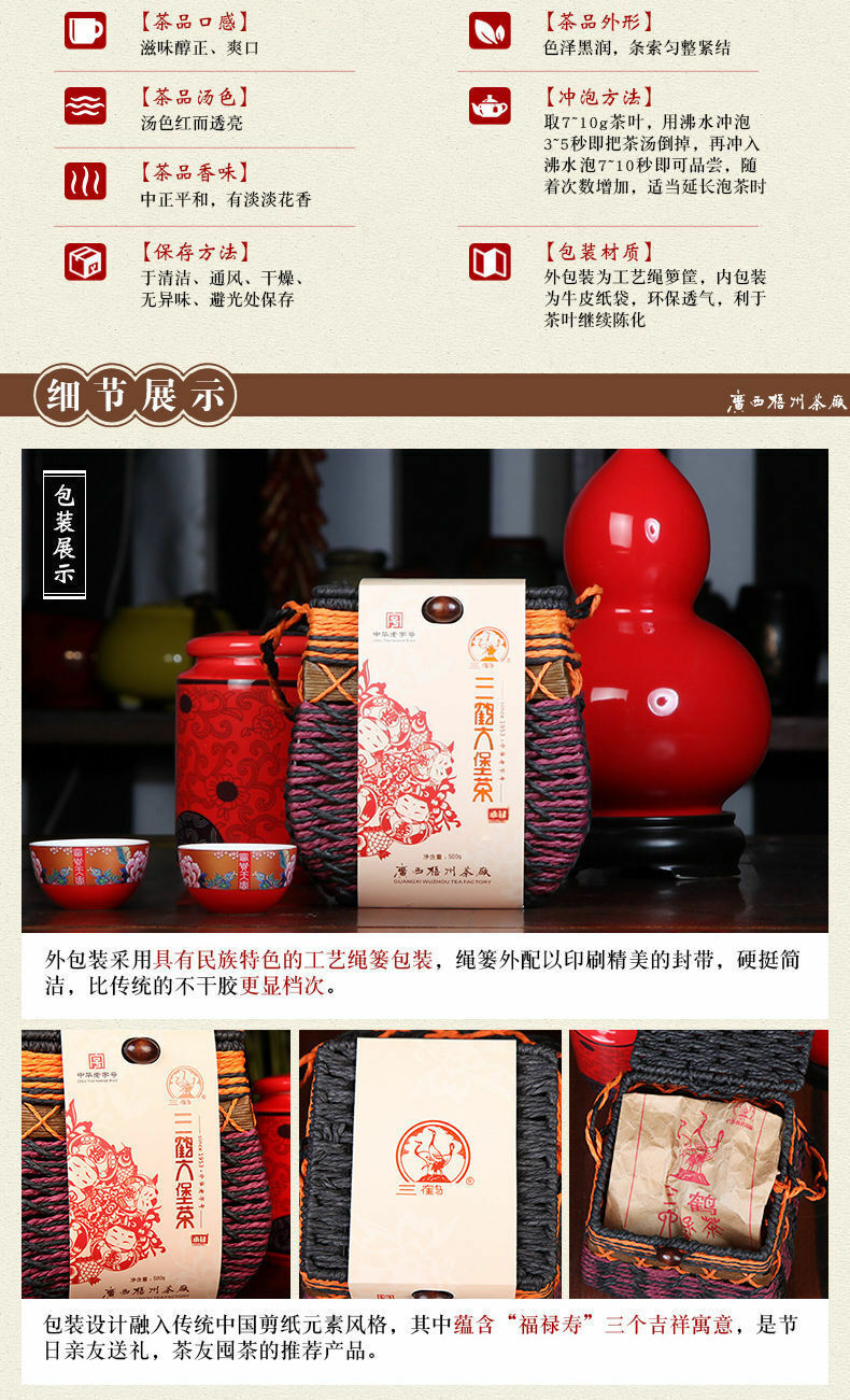 SAN HE Cheng Lu Liu Bao Hei Cha Dark Tea Loose Liu Pao Black Tea Basket 500g