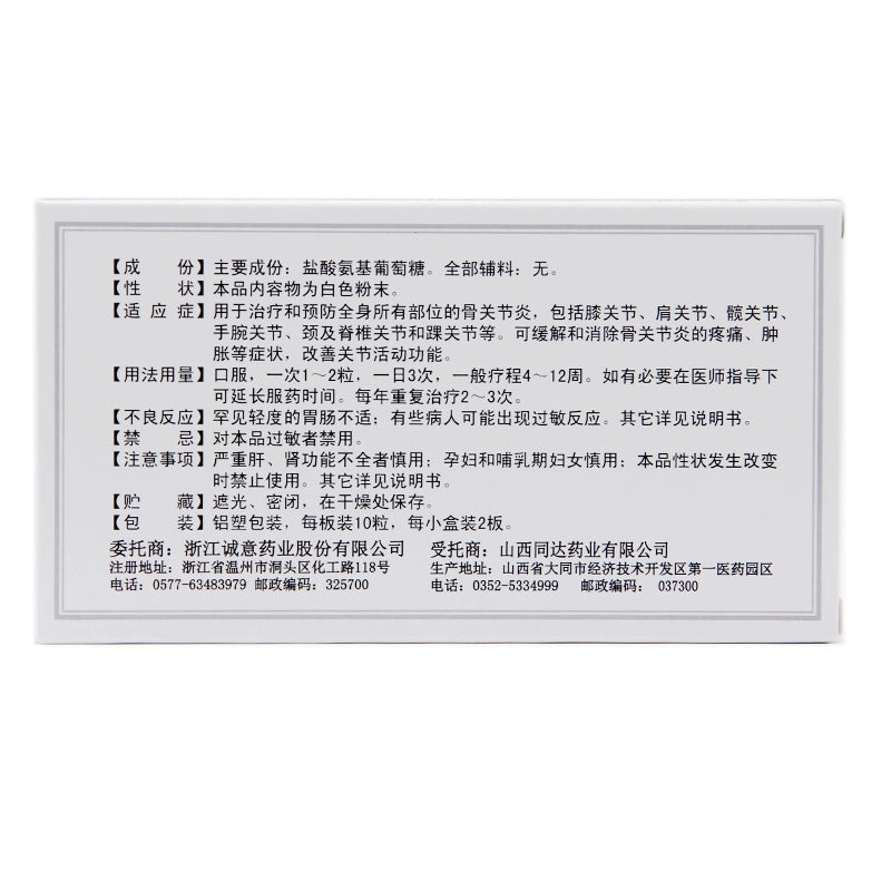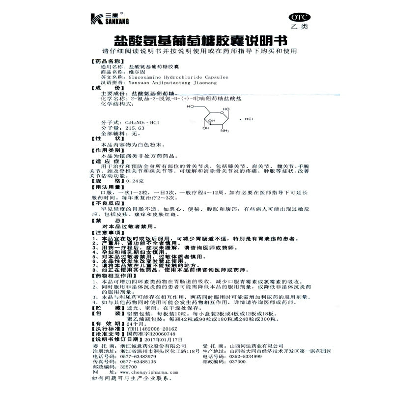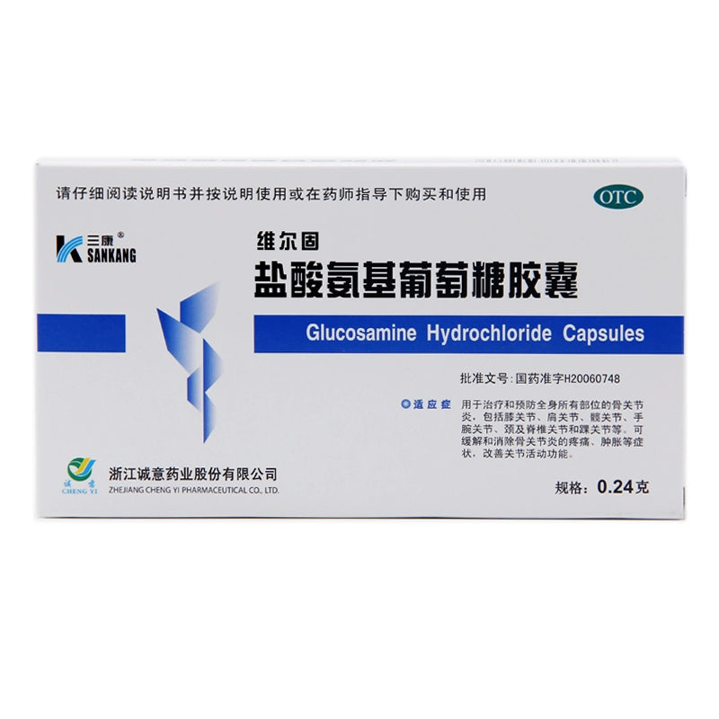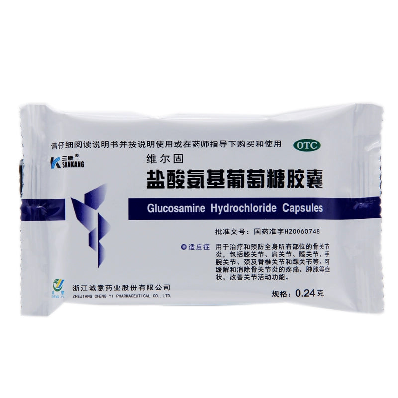 Sankang Velcro Glucosamine Hydrochloride Capsules 0.24g*10 capsules/plate*2 plates/box OTC 三康 维尔固 盐酸氨基葡萄糖胶囊 0.24g*10粒/板*2板/盒 OTC