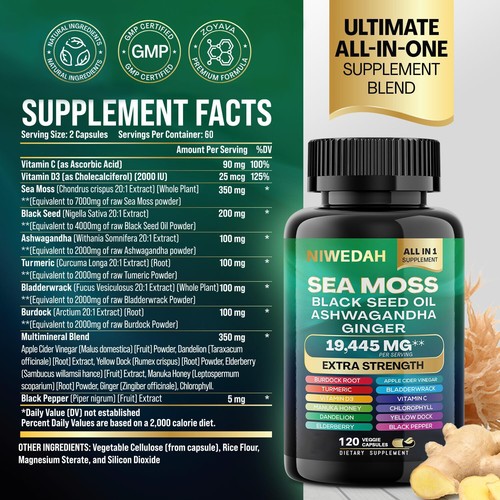 • The Sea Moss Capsule contains a potent serving of 7000mg equivalent dose of Sea Moss Capsules. Sea Moss is known for its nutrients, including its rich source of carotenoids and minerals. The product offers a versatile ingredient that can be found under different names and forms, including seamoss, irish moss, sea moss gel, sea moss gummies, seamoss gel, red seaweed, and seamoss pills.